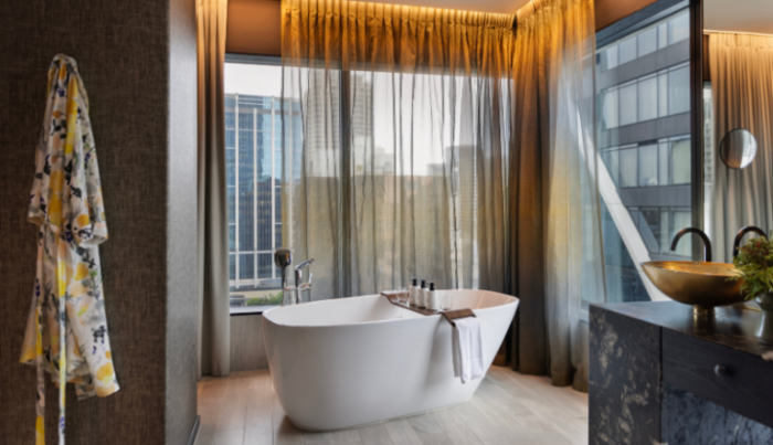 Smart, soulful, and contemporary, The Hotel Britomart, with 99 guest rooms and 5 luxury Landing Suites, welcomes guests to the best of downtown waterfront Auckland. New Zealand’s first 5 Green Star hotel, it features beautiful timber-lined, cocoon-like rooms with elegantly tiled bathrooms, built-in sofas, and hand-made ceramics. Downstairs, the historic warehouses of the Britomart neighbourhood house some of the country’s best restaurants, bars, and cafes, while plant-lined pedestrian streets and laneways offer incredible shopping. Just a few steps away are Auckland’s beautiful waterfront, the ferry terminal, and the central business district, while the underground Britomart Transport Centre provides easy public transport connections to every part of the city.